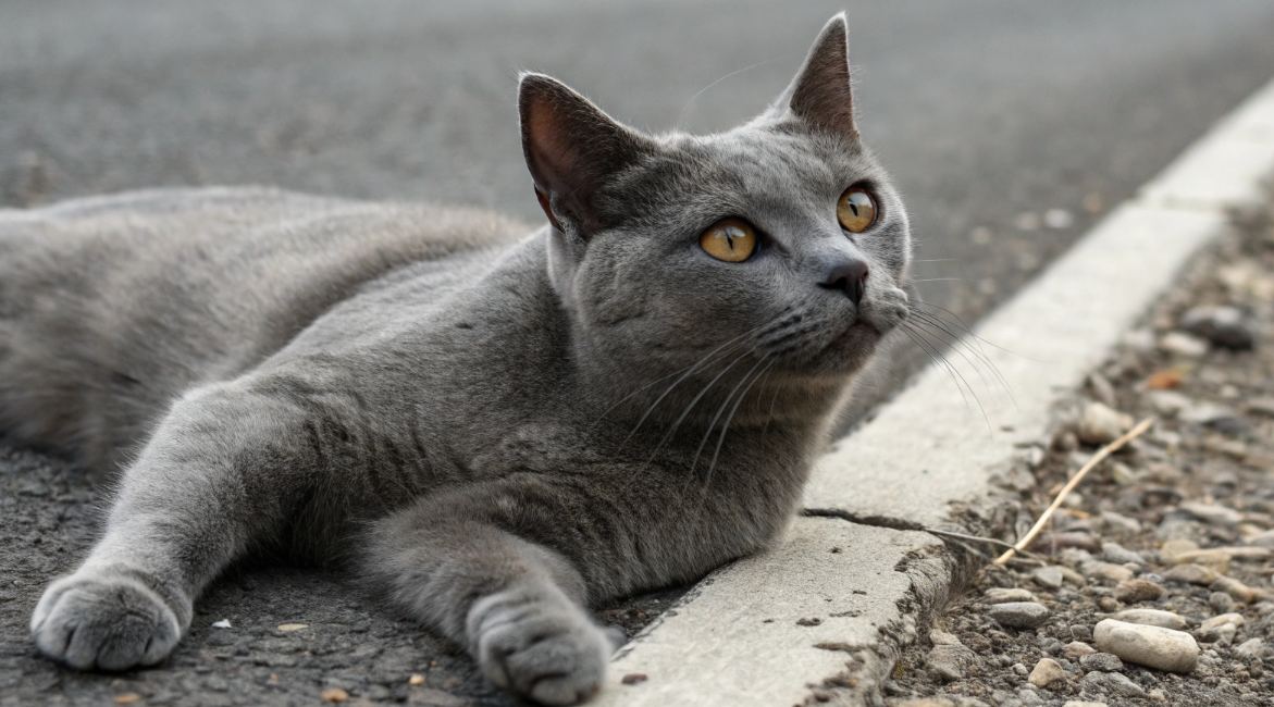 На проезжей части, метрах в трех от него, лежал кот. Серый, в белых носочках. И не двигался.