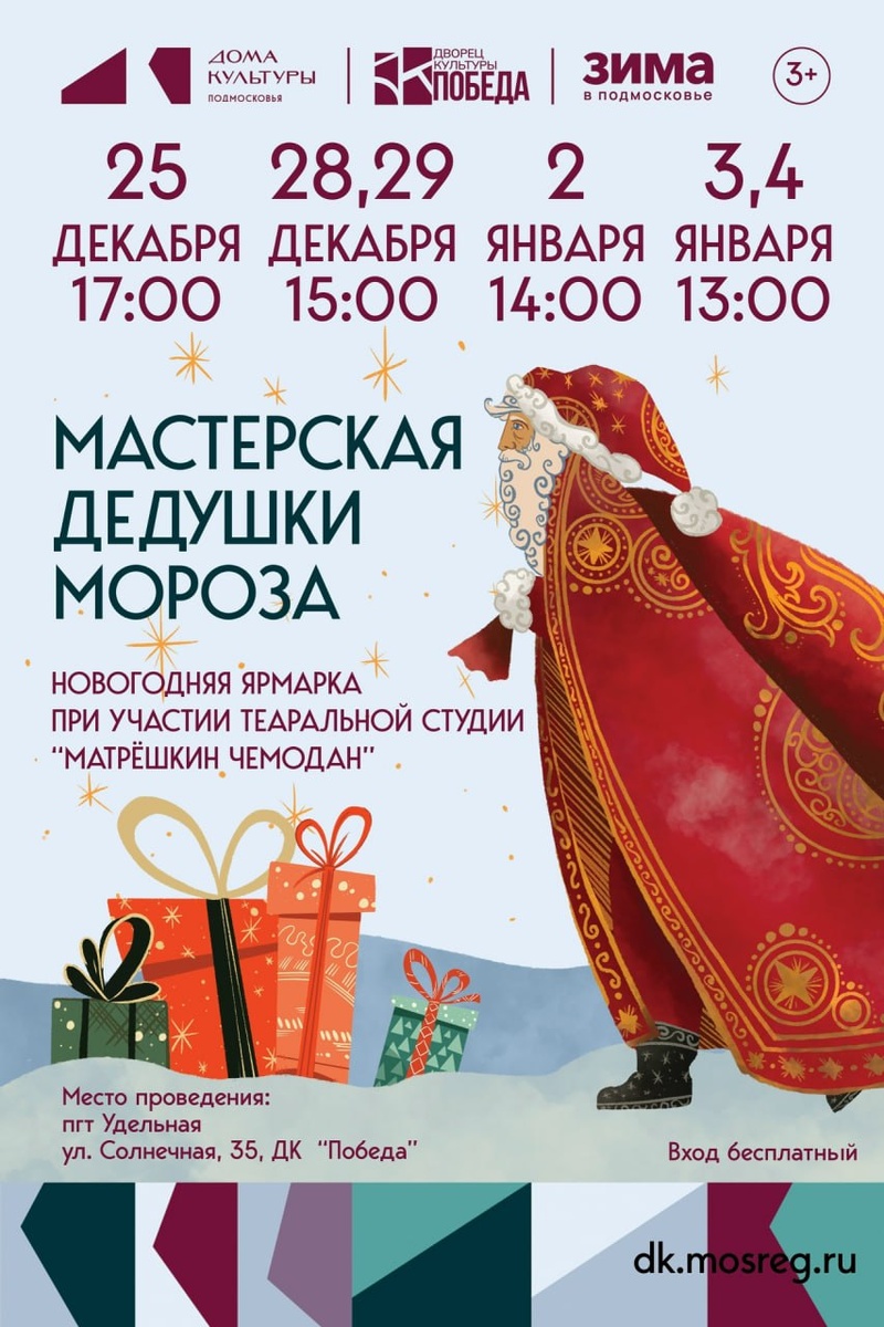 🎄3 и 4 января в 13:00 будет проходить новогодняя мастерская Деда Мороза — место, где каждый сможет стать рождественским волшебником! 🎁Место проведения: пгт Удельная, ул. Солнечная, 35, ДК «Победа» 🎉Вход свободный 🪅Источник: Дворец культуры "ПОБЕДА" I Удельная I ДК ПОБЕДА #ЗимаВРаменском #ЗимаВПодмосковье 😊Онлайн эфир 😊Мы в ВК 😊Подписаться