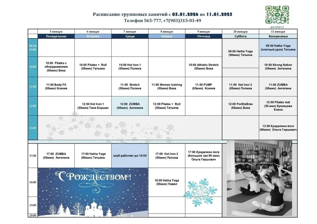 ⏩ Расписание групповых занятий с 5.01.26 по 11.01.26