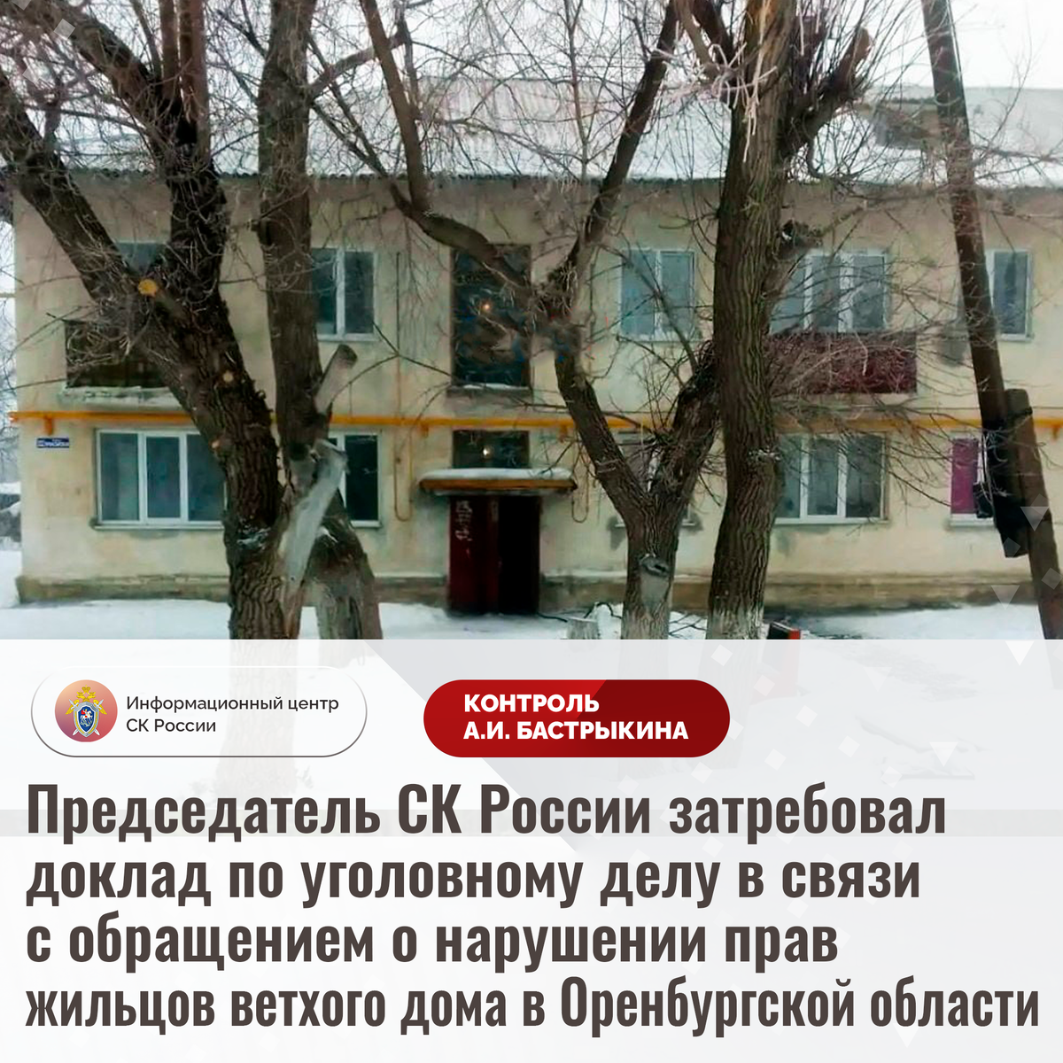 Председатель СК России затребовал доклад по уголовному делу в связи с обращением о нарушении прав жильцов ветхого дома в Оренбургской области
