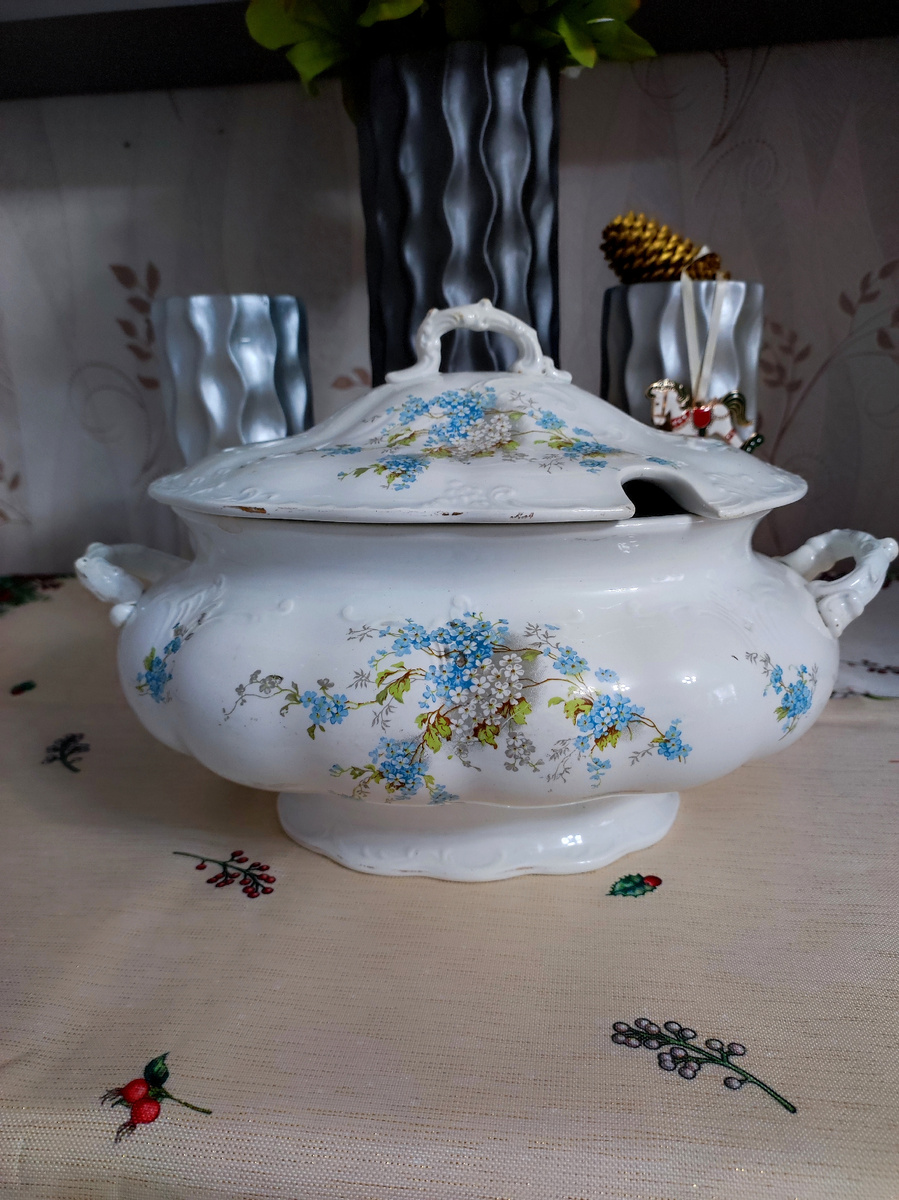 Спешу поделиться с вами своей очередной радостью и редкостью. Мои вымечтанные Кузнецовские Незабудки, да ещё на большой супнице, да ещё на такой красивой форме!
