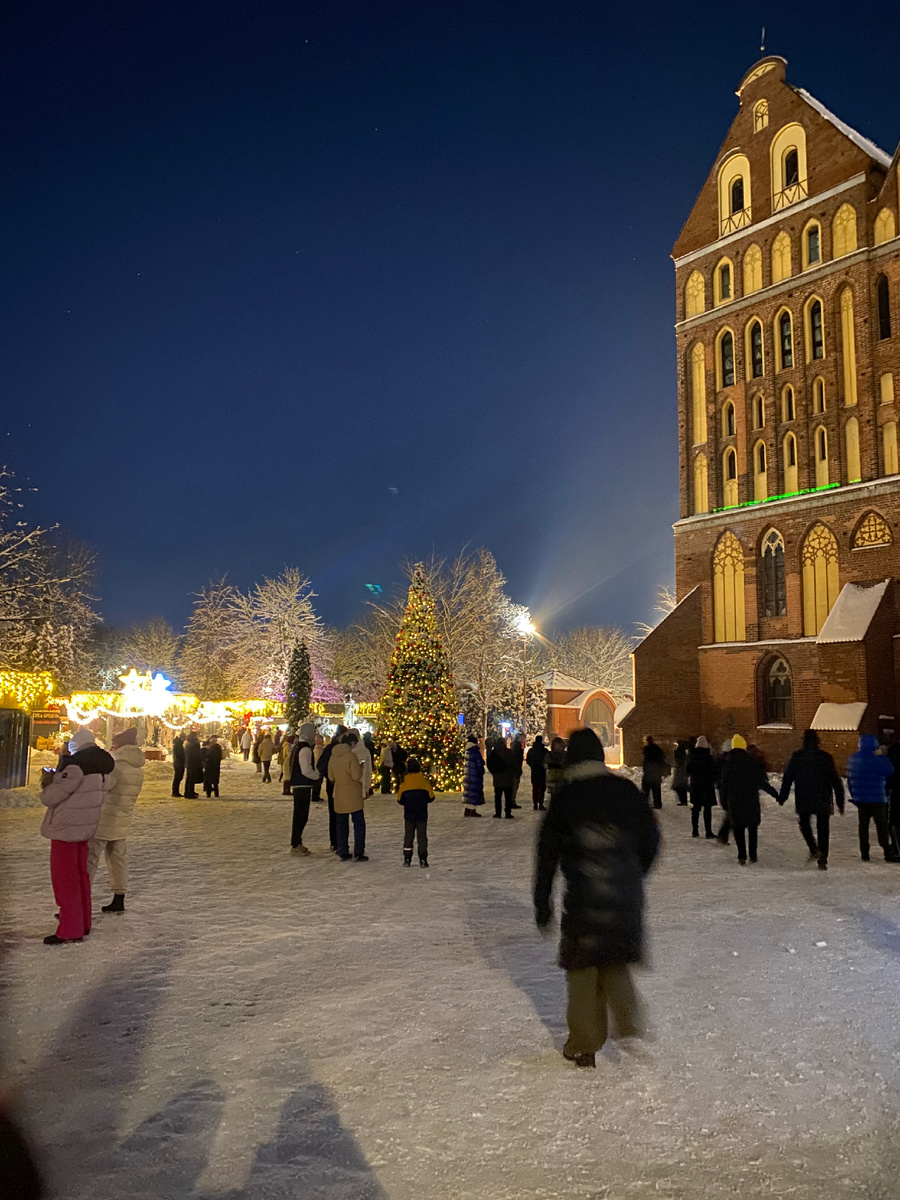 Ярмарка раскинулась на острове Канта, каждый уголок был продуман до мелочей. У самого Собора находятся домики с рукодельными подарками - там вязаные носки, варежки, свечи, игрушки из дерева и керамика с зимними мотивами (и не только). А в начале - фуд‑зона, где дымятся чашки с горячими напитками - глинтвейн, кантвейн (его можно попробовать только в Калининграде!😊), грог, а с грилей доносится запах сосисок, рыбы и кенигсберских клопсов, можно отведать и картофельные пышки с красной икрой, крампампули и пян-се.