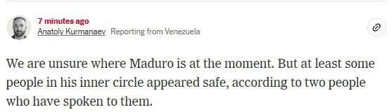 ⚡️ PEOPLE FROM MADURO'S INNER CIRCLE DO NOT KNOW WHERE PRESIDENT IS BUT INNER CIRCLE 'APPEARED SAFE' — NYT