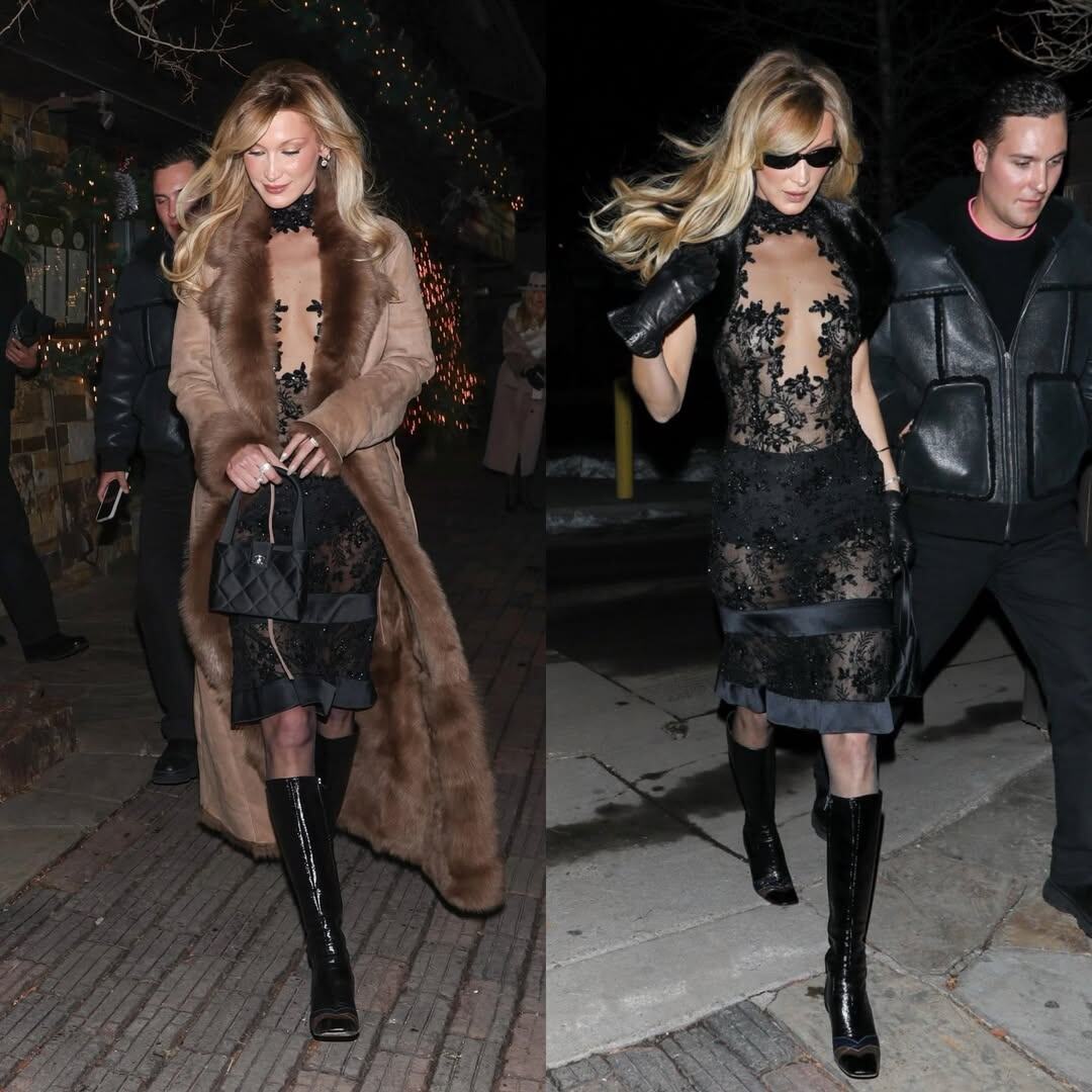 Мы продолжаем обзор лучших выходов звёзд в новогоднюю ночь. И, конечно, я не могу не рассказать о по-настоящему эффектном и очень точном выходе Беллы Хадид, которая встретила Новый год на горнолыжном курорте в Аспене в образе, где сошлись сразу все ключевые модные акценты сезона. Для новогодней вечеринки Белла выбрала винтажное кутюрное платье Georges Chakra из коллекции Fall Winter 2004. Полупрозрачное чёрное кружево, откровенное декольте, отделанное кружевом, выверенный силуэт и та самая тонкая грань между откровенностью и элегантностью. Это тот случай, когда «голое» платье не выглядит провокацией, а воспринимается как сложная и очень красивая модная форма. В одном образе Белла собрала сразу несколько трендов. Кружево, которое сегодня снова на пике и давно перестало быть исключительно вечерним материалом. Винтажное прозрачное платье выглядит естественно и актуально. И, конечно, меховое пальто, добавленное как верхний слой, становится логичным и очень точным продолжением образа. Имен