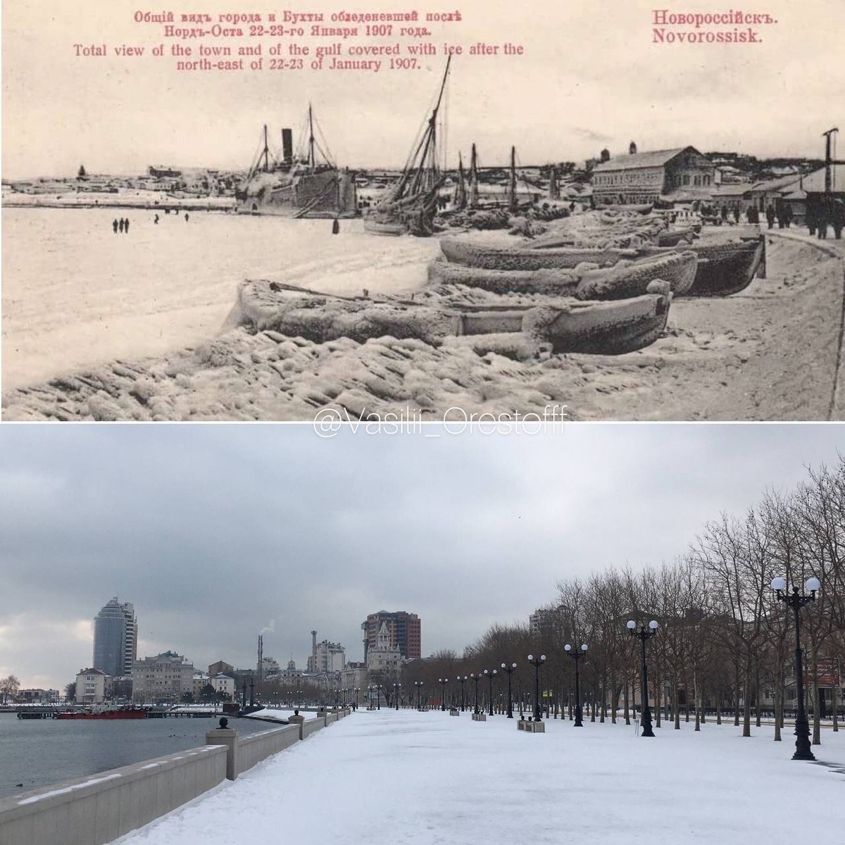 #Зима 1907 и 2023 гг. Район центральной части набережной. @vasilii_orestofff 📲 @nvrsk_online