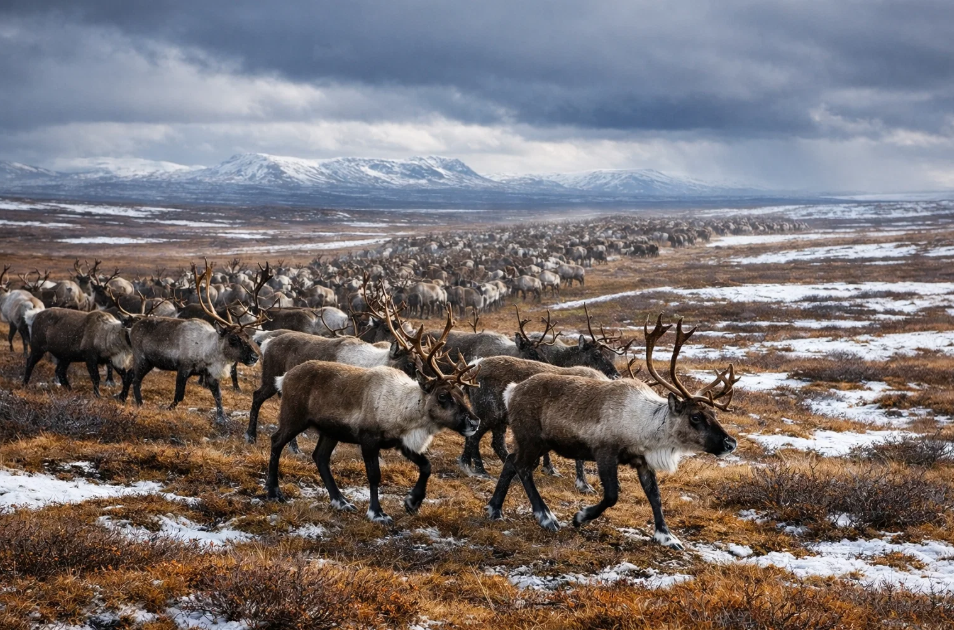 Однако сегодня вековой уклад и само существование дикого северного оленя стоят перед серьезными угрозами. Изменение климата ведет к непредсказуемости погоды. Оттепели зимой сменяются резкими заморозками, образуя наст — ледяную корку на снегу. Пробить ее копытом олень не может и остается без корма. Теплые сезоны становятся длиннее, что усиливает нашествие гнуса и паразитов. Активная промышленная деятельность в Арктике — добыча нефти и газа, строительство трубопроводов — разрушает пастбища, пересекает и нарушает традиционные пути миграции. Животные путаются, не могут вовремя добраться до привычных мест, что ведет к падежу. Добавляет проблем и браконьерство.