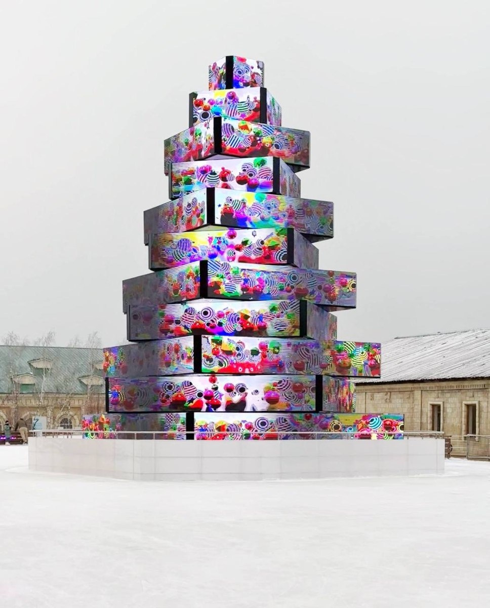 Ёлка: 184 экрана, 0 запаха, 0 иголок. В программе: пиксели вместо хвои, скринсейверы вместо игрушек, бесконечная видеотрансляция вместо сказки. Для тех, кто молится на обновы софта и скучает по офису. Привет из дивного нового года. Запах хвои и уюта приносить с собой. 🎄