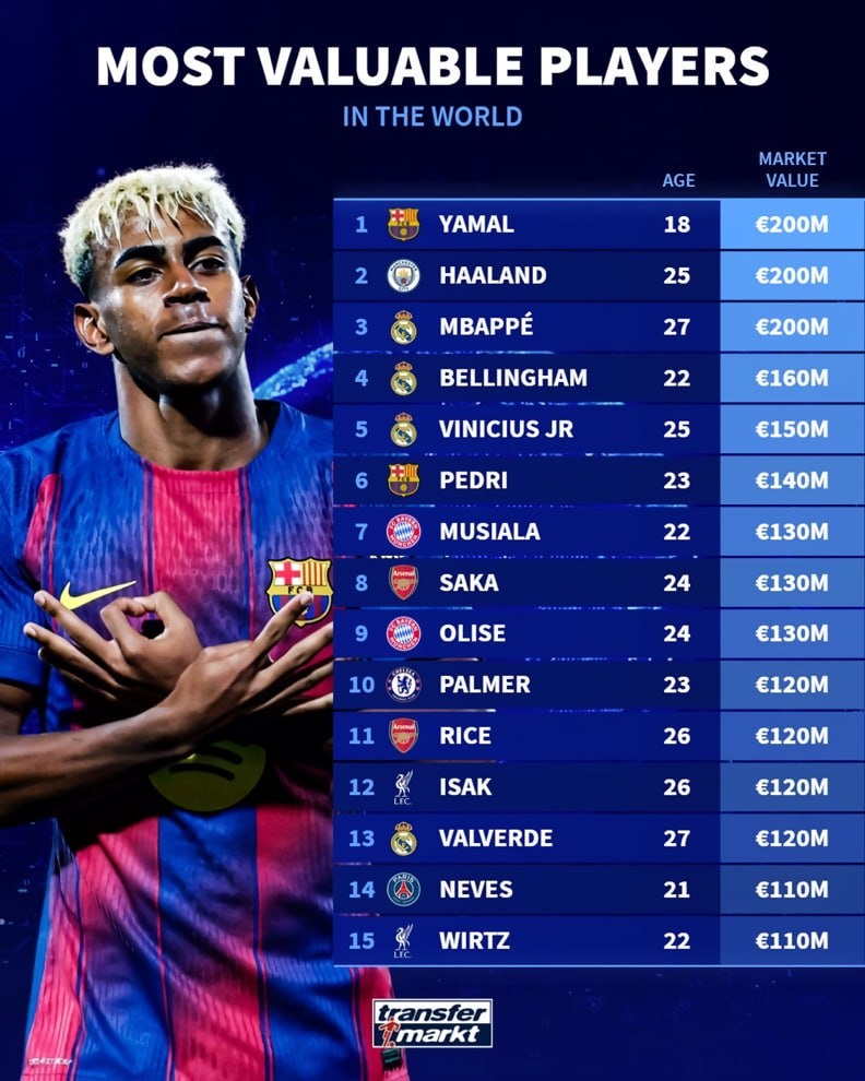 📈 Самые дорогие игроки в мире по итогам 2025 года