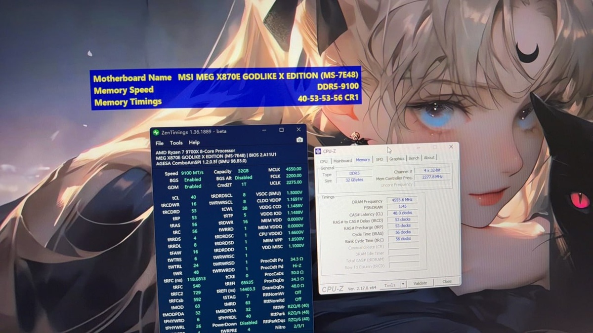 Одна из самых дорогих и редких плат AM5 — MSI MEG X870E GODLIKE X Edition — демонстрирует именно то, за что энтузиасты готовы платить $1300. На Bilibili появились результаты разгона памяти, и они впечатляют даже по меркам топовых X870E‑плат. Вот что удалось добиться: • Ryzen 7 9800X3D + 32 ГБ DDR5 — стабильные DDR5‑8900 — тайминги 36‑49‑49‑56 CR1 при 1,56 В — полное прохождение RunMemtestPro без ошибок • Тест низкой задержки — DDR5‑6600 — тайминги 24‑35‑35‑56 CR1 при 1,65 В — снова полная стабильность • Ryzen 7 9700X + тот же комплект DDR5 — загрузка на DDR5‑9100 (40‑53‑53‑56 CR1) — стабильность подтверждена на DDR5‑9000 Как думаете, увидим ли мы стабильные 10 000+ МТ/с на AM5 в 2026 году? 🖥 Заказать сборку ПК в InterPC 🔒 Закрытый чат 🌐 Наши каналы 🗺 #Аmd #ОпeрaтивнaяПaмять #Рaзгoн