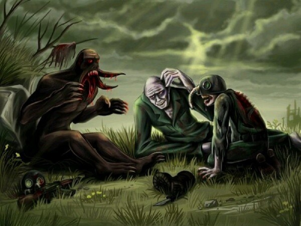 Из-за кустов вылетает сталкер, сопляк совсем. Видит двух Контролёров, один стоит столбом, другой лыбится, как чеширский кот. Вытаскивает он, балбес, детектор, начинает тыкать во все стороны, читает показатели и выдаёт: