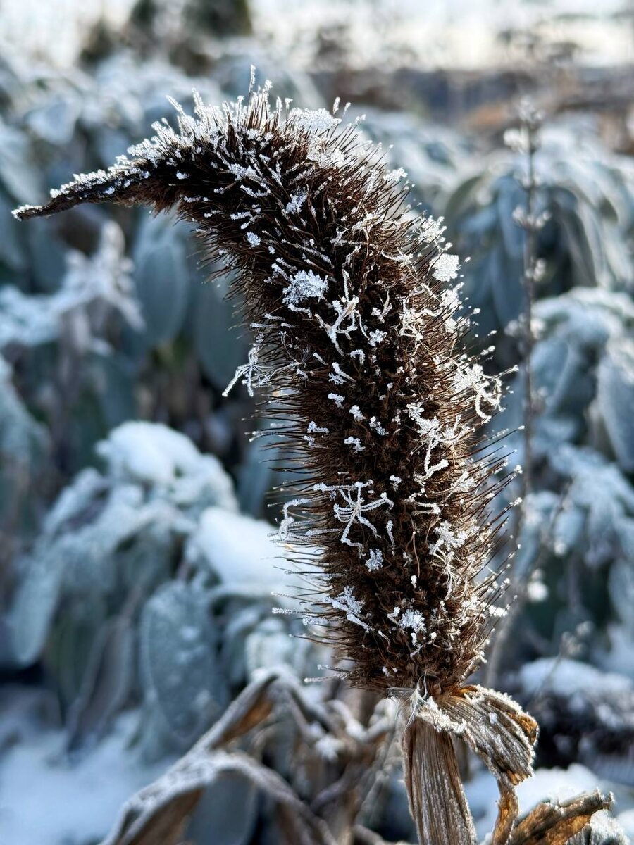 » Пеннисетум сизый Purple Baron — тот самый случай, когда теплолюбивый экзот, который в нашем климате выращивается как однолетник, производит сильное впечатление. Его особенность — травянистые, пористые стебли. Они не одревесневеют, из-за чего начинают быстрее разлагаться, а колос заваливаться. Однако, при плотной посадке стебли поддерживают друг друга, защищаясь от изломов и влаги. Это заметно продлевает декоративность растения — вплоть до поздней зимы. Именно поэтому однолетник Pennisetum glaucum ‘Purple Baron’ эффектно работает не только в летних композициях, но и в зимнем саду.