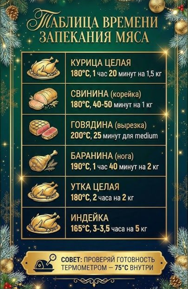Дорогие мои, готовить большое мясное блюдо к празднику — это не аврал. Это медитация. Рассчитайте время по таблице, добавьте к нему запас в 30 минут (на предварительный прогрев, отдых мяса и просто на всякий случай), и вы перестанете нервничать. Пусть ваша кухня в эти дни наполняется не суетой, а ароматным, аппетитным ожиданием праздника.