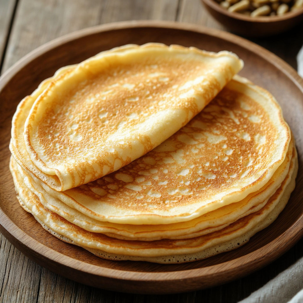 - Готовность: Жарьте блинчик с другой стороны до золотистого цвета.