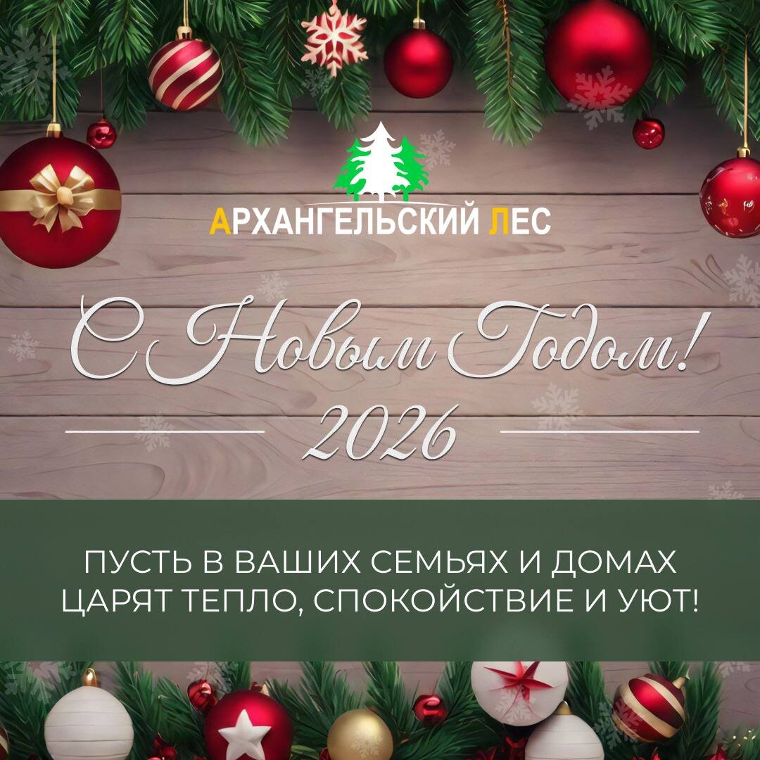! ✨🎄 Пусть наступающий год принесёт новые возможности, стабильность и уверенность в каждом дне. Желаем вам крепкого здоровья, благополучия, успехов в делах и уюта в доме. Спасибо за доверие и сотрудничество. Будем рады быть рядом и в новом году, помогая реализовывать ваши планы и проекты! 🌲 С тёплыми пожеланиями, ООО «Архангельский Лес»