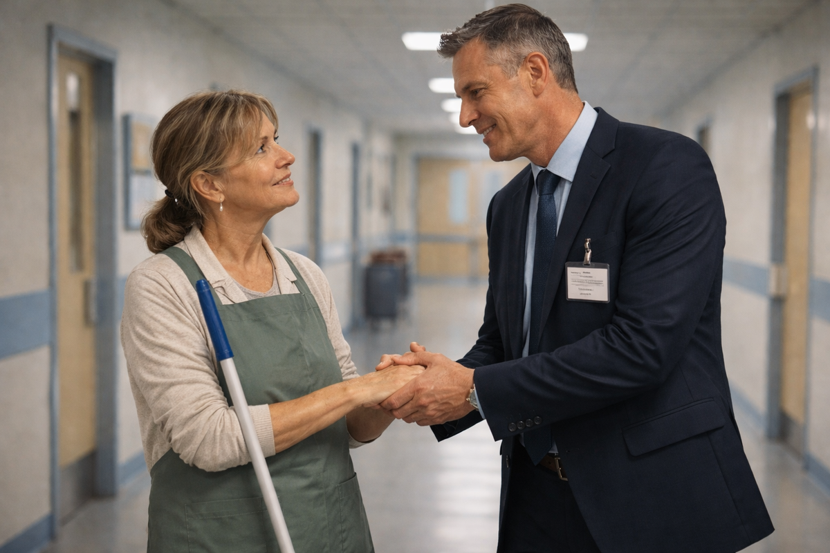 А вы помните своего первого учителя? Того, кто впервые поверил в вас, когда вы сами в себя ещё не верили. Для кого-то эта история покажется сказкой, но её смысл очень простой: у каждого человека есть своя дорога и своя история. И не важно, кем он работает сегодня — за столом директора или с тряпкой в коридоре. Уважение не измеряется должностями. Иногда именно самые незаметные люди когда-то сделали для нас больше всех. Берегите таких людей и не забывайте тех, кто стоял у истоков вашей жизни.