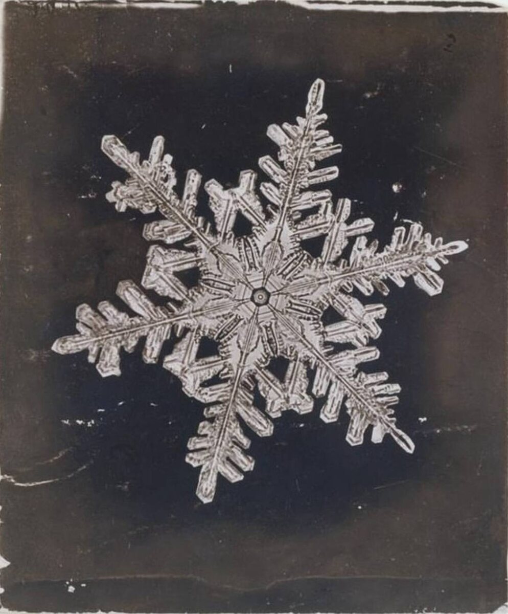 Ее сделал Уилсон Элвин Бентли, пионер в области микрофотографии. Более полувека он документировал бесчисленные снежные кристаллы, исследуя огромное разнообразие вариаций, на которые только способна простая шестиугольная форма. Хранится в The Met. 📸Wilson Alwyn Bentley American, Snow Crystal, c. 1910. Gelatin silver print. Via metmuseum