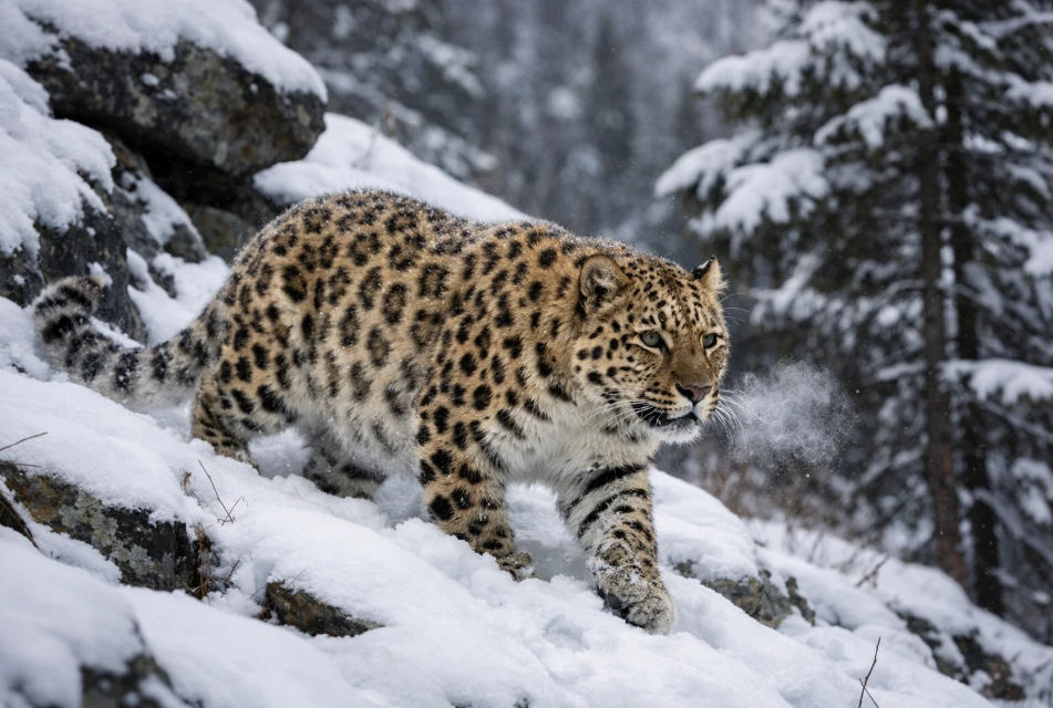 Чтобы понять величие этого зверя, нужно представить себе место, которое он называет домом. Это не бескрайние африканские саванны или индийские джунгли. Его владения — это уникальные леса на юго-западе Приморского края России, захватывающие узкую полоску территории у границы с Китаем и, возможно, Северной Кореей. Здесь царят суровые зимы с глубоким снегом и крепкими морозами, и жаркое, влажное лето. Скалистые сопки, покрытые дубом, кедром и черной пихтой, изрезанные ущельями и выходами скал — вот идеальный ландшафт для этой скрытной кошки. Ее шкура — не просто красота, это совершенный камуфляж. Золотистый фон, густо усыпанный темными, четкими кольцами и пятнами, сливается с игрой света и тени в летней листве и с пестрой картиной пожухлой травы и опавших листьев осенью. Зимой этот мех становится длиннее, гуще и светлее, помогая зверю оставаться невидимым на фоне снега и скал.