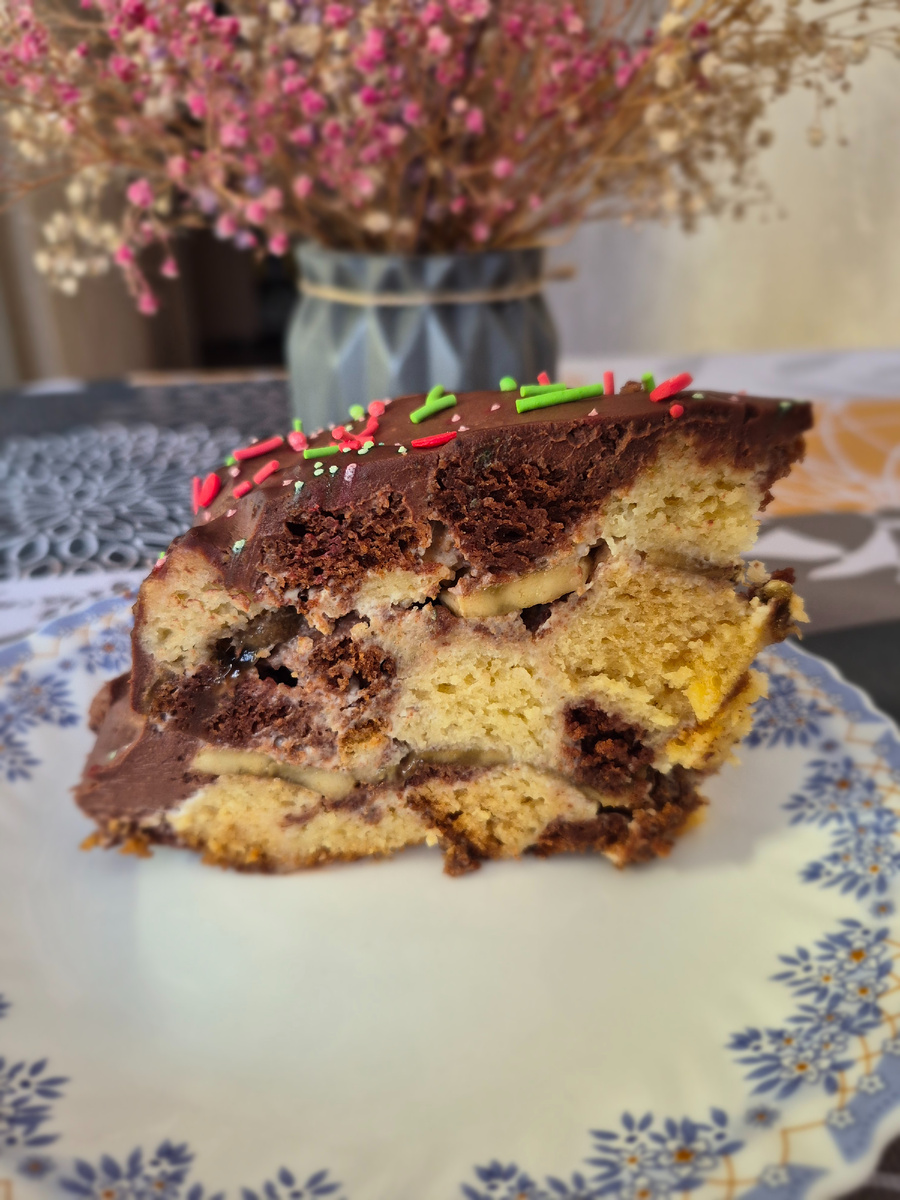 13. Поверх банана снова слой коржей со сметаной.