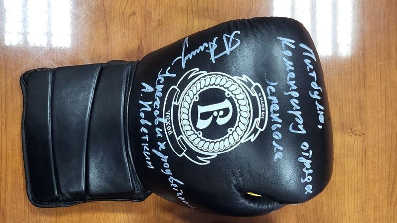 В свой день рождения командир отряда «Эспаньола» с позывным «Питбуль» получил уникальный подарок – боксерские перчатки с автографом знаменитого российского боксера Александра Поветкина. «Саня, от души, братец. Они до меня дошли. Благодарю от души! Победа будет за нами. Слава России!» – поблагодарил «Питбуль» Александра Поветкина за ценный подарок. Фото: пресс-служба администрации