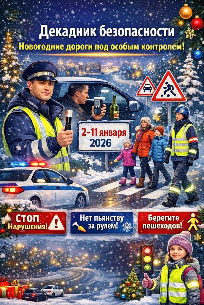 В период Новогодних и Рождественских праздников, когда на дорогах возрастает интенсивность движения, особенно важно сохранить главное — жизнь и здоровье людей. Со 2 по 11 января 2026 года на территории Ростовской области пройдет региональное оперативно-профилактическое мероприятие «Декадник безопасности дорожного движения». В эти дни Госавтоинспекция усилит контроль за соблюдением ПДД: — пресечение грубых нарушений; — профилактика управления транспортом в состоянии опьянения; — защита пешеходов и пассажиров; — обеспечение безопасности на зимних дорогах. Пешеходам — особое внимание! В темное время суток и в условиях ограниченной видимости используйте световозвращающие элементы. Они помогают водителям заметить пешехода заранее и значительно снижают риск ДТП. Уважаемые участники дорожного движения! Соблюдайте правила, будьте взаимовежливы и помните: ваша безопасность начинается с вас. Пусть праздничные дни будут светлыми и безопасными! Источник: Госавтоинспекция Ростовской области