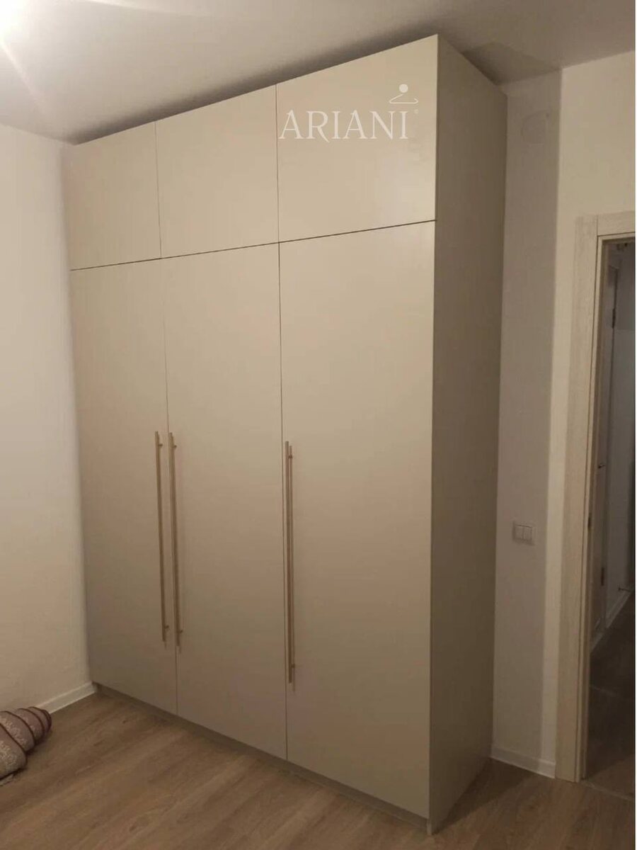 Монохромная, матовая поверхность и аккуратные пропорции создают спокойный фон, а детали подчёркивают качество и стиль. • Отделка: светлая и нейтральная, ровная фактура без лишнего блеска. • Дизайн фасадов: три высоких дверцы с тонкими вертикальными ручками в тёплом металлическом тоне. • Внутреннее наполнение: комбинированная организация — вешала для одежды, полки для сложенных предметов и два выдвижных ящика. Встроенное исполнение от пола до потолка — максимальная ёмкость при минимальном визуальном весе. ➖➖➖➖➖➖➖ Обратитесь к нам уже сегодня, и мы поможем воплотить вашу мечту в реальность 📱+74993224342 ✈️написать в чат менеджеру ➖➖➖➖➖➖➖ #гардеробная #мебельнаяфабрика #мебельназаказ #шкафкупе #кухняназаказ #дизайнинтерьера #кухнимосква #шкафмосква #гостиная #встроенныйшкаф #столназаказ #рабочееместо #прихожая