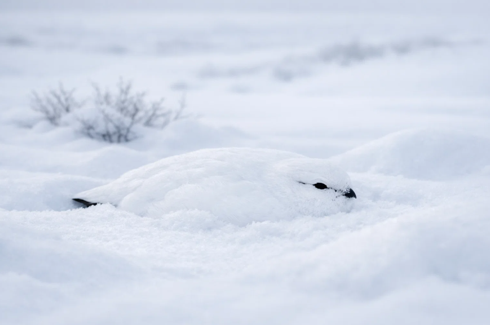 Но маскировка — это лишь одна сторона выживания. Вторая, не менее важная, — это пропитание. Зимой, когда вся растительность скрыта под многометровым слоем снега, куропатке нужно питаться. И здесь ей также помогает её белый наряд. Основная зимняя пища — это почки, сережки и концевые побеги ив, карликовых березок, ольхи. Птицы собираются в небольшие стайки и перемещаются по своим кормовым территориям. Чтобы добраться до лакомых веточек, они делают под снегом настоящие тоннели и ходы, куда заходят, ныряя с поверхности. На фоне белого снега их белые спины не привлекают внимания, пока они кормятся на поверхности. А когда они скрываются под снегом, то становятся вообще невидимыми. Снег также служит им отличным ночным укрытием и защитой от мороза. Птица ныряет в рыхлый сугроб, проделывает в нем камеру и ночует там, где температура может быть на десятки градусов выше, чем на пронизывающем ветру.