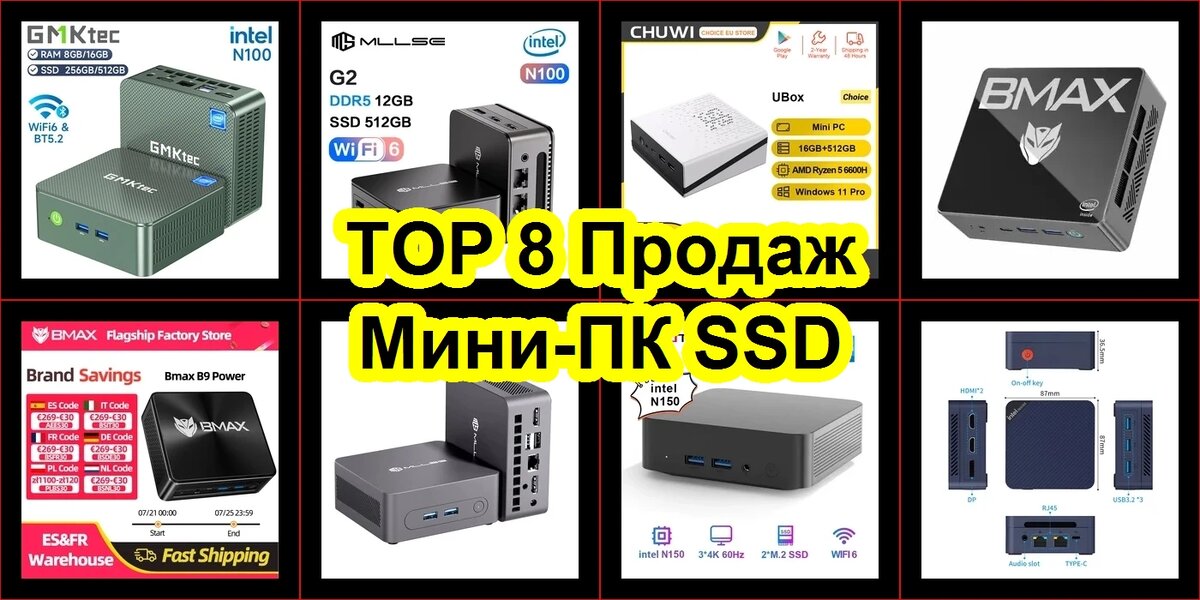 Мне 36 лет, я инженер-программист, который давно работает удалённо. Но вот какая проблема: ноутбук уже изрядно устарел, а таскать за собой системный блок — ну сами понимаете, та ещё история. Поэтому я решил присмотреть мини-ПК SSD: компактные, бесшумные, но при этом мощные. Скажу честно — я сам не ожидал, что выбор на AliExpress окажется таким огромным! В итоге заказал сразу несколько моделей из ТОПа продаж, чтобы протестировать их в реальных задачах (кодинг, видеоконференции, немного монтажа и, конечно, игры). А теперь делюсь своими мини-ПК SSD отзывами — может, кому-то это поможет определиться с покупкой.