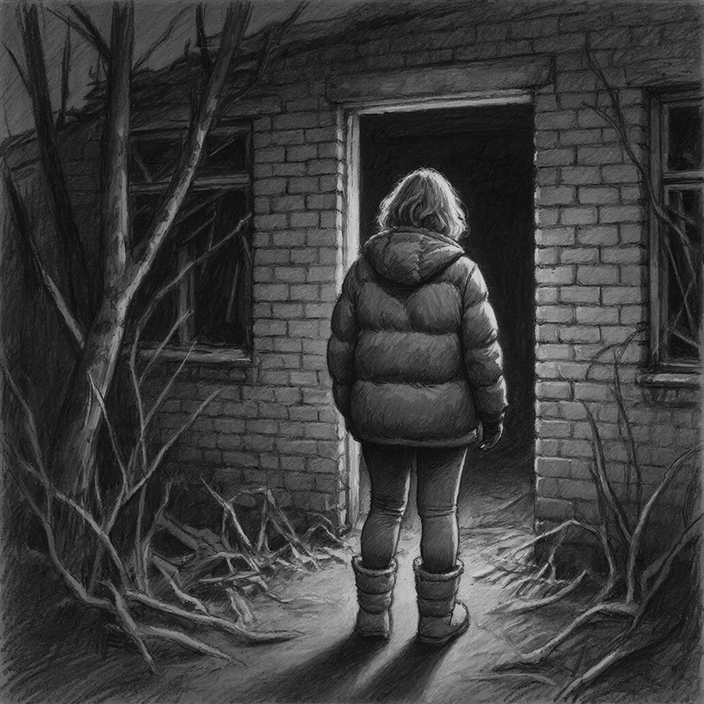 Кирпичные стены, некогда красные, а теперь выцветшие до грязно-рыжего, цвета ржавчины и старой крови, поросли мхом. Окна были наглухо заколочены кривыми, почерневшими досками. Входная дверь — когда-то, наверное, синяя — висела на одной нижней петле, перекошенная. Деревянный порог под ней сгнил и провалился внутрь, образовав черную пасть. Вера направила луч фонаря внутрь.