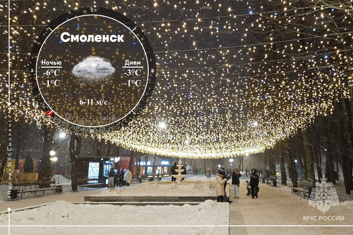- в Смоленске: ночью -6°С …-1°С, днём -3°С …-1°С. Обо всех изменениях в погоде смотри на сайте meteoinfo.ru/hdmapsmete... Наши предки считали, что если на Варвару, 4 января, снег – к долгой весне. Считается, что он будет таять медленно, задерживая наступление тепла. МЧС России рекомендует: выключай электроприборы из розетки, даже если выходишь из дома ненадолго. Безопасность начинается с тебя! В случае пожара немедленно звони по номеру «101». Погода в этот день в прошлом году @mchs_smolensk