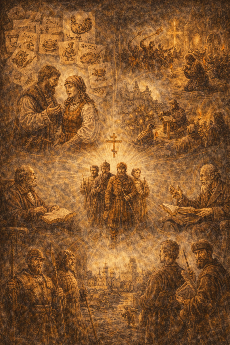 Столкновение и последующий синтез двух мощных мировоззренческих систем — древнеславянского язычества и византийского православия — заложили основу для глубокой противоречивости русского национального характера. Язычество с его обожествлением сил природы сформировало стихийное, органическое восприятие мира. Пантеон славянских богов — громовержец Перун, «скотий бог» Велес, бог небесного огня Сварог и податель благ Дажьбог — отражал все сферы жизни древнего славянина. После крещения Руси многие языческие образы не исчезли, а трансформировались, слившись с христианскими святыми: Перун стал ассоциироваться с Ильей-пророком, а Велес — со святым Власием.