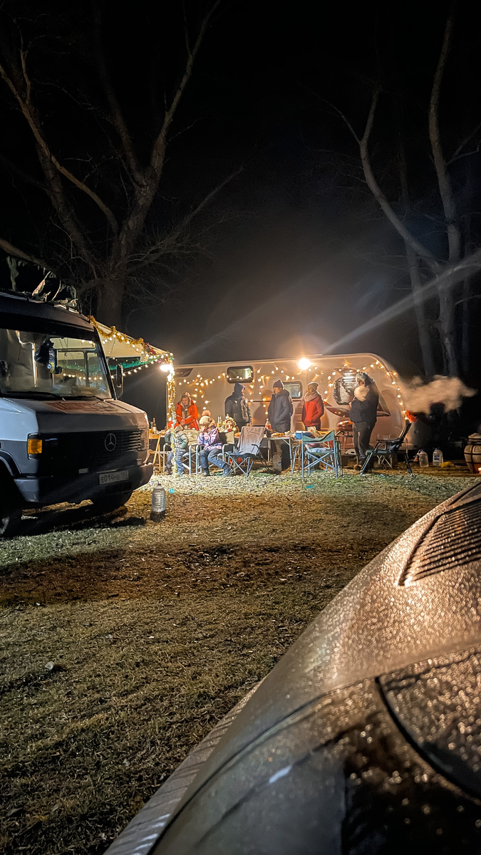 Наш первый Новый год на колёсах. Тогда у нас не было чёткого плана, только желание быть в дороге. Мы написали в чаты вжнлайферов — таких же людей, которые путешествуют в домах на колёсах. К нам приехали совершенно незнакомые люди из разных городов: Москвы, Казани, Астрахани. Мы вместе готовили, смеялись, делились историями, планами и сомнениями. И в какой-то момент стало ясно: это уже не просто встреча, а начало дружбы. Многие из тех людей до сих пор остаются в нашей жизни.