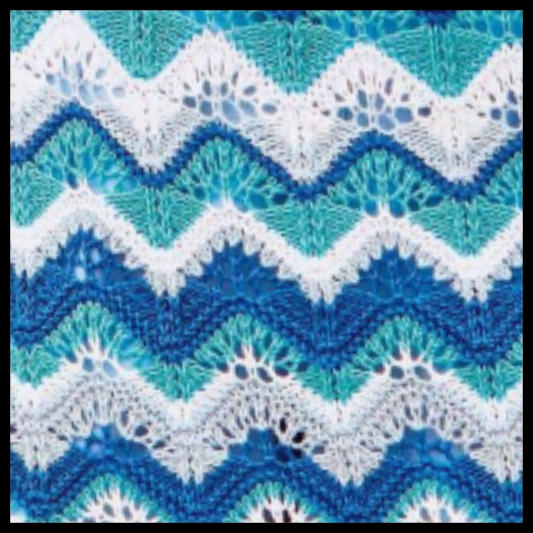 Последовательность полос A: * 2 р. синей, 4 р. светло-голубой, 6 р. белой, 8 р. бирюзовой, 4 р. синей, 6 р. светло-голубой, 8 р. белой, 2 р. бирюзовой, 6 р. синей, 8 р. светло-голубой, 2 р. белой, 4 р. бирюзовой, 8 р. синей, 2 р. светло-голубой, 4 р. белой, 6 р. бирюзовой нитью, от * постоянно повторять.