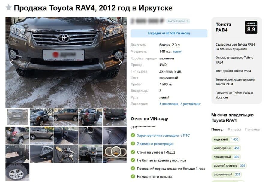 В России всплыла «капсула времени»: на продажу выставили новый Toyota RAV4 2012 года