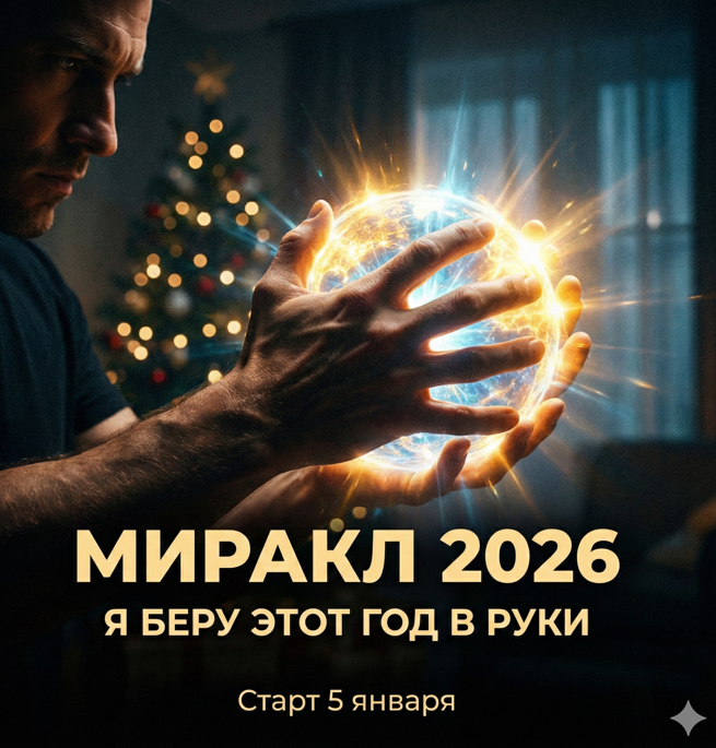 3 января — странный день. Праздник уже чуть-чуть “выдохся”. Елка стоит, гирлянды мигают, а внутри у многих появляется тишина… и честный вопрос: “И что дальше?” Я помню, как однажды именно 3 января поймал это чувство. Снаружи всё красиво, но внутри — будто кто-то выключил музыку. И в этот момент я понял: Новый год не начинается 1 января. Он начинается в тот день, когда ты собираешь себя и говоришь: “Стоп. Я беру этот год в руки.” 5 января в 19:30 МСК — стартовый эфир. Три дня, которые нужны не “чтобы поставить цели”, а чтобы вернуть состояние, в котором цели сами становятся реальными. Что обычно происходит на МИРАКЛ: ты выдыхаешь голова перестаёт шуметь становится ясно, что твоё, а что чужое появляется энергия и появляется чувство: “я могу, я иду, я живу” И дальше начинается самое приятное: в жизни будто включают зелёный свет. Не потому что “магия”, а потому что ты перестаёшь тащить год на старом режиме. Участие — за донат, любая сумма. Потому что это старт года, который должен быть дос