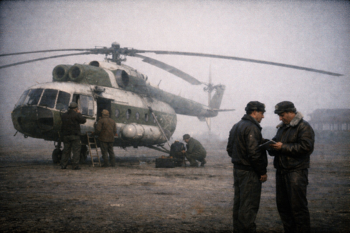 В начале осени 1970 года с одного из аэродромов в северной части страны вылетел вертолёт с экипажем из трёх человек. Задача была рутинной: перегон техники и визуальная проверка участка местности, где ранее фиксировали перебои связи. Маршрут считался безопасным, погода — устойчивой, запас топлива — с большим резервом. Экипаж вышел на связь по графику, доложил о прохождении контрольной точки и подтвердил курс. Это был последний сеанс.
