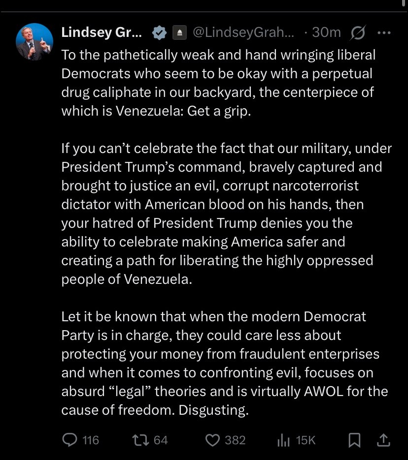 Sen Graham slams Dems as ‘pathetically weak, hand wringing liberals’ who accept a ‘DRUG CALIPHATE in our backyard’