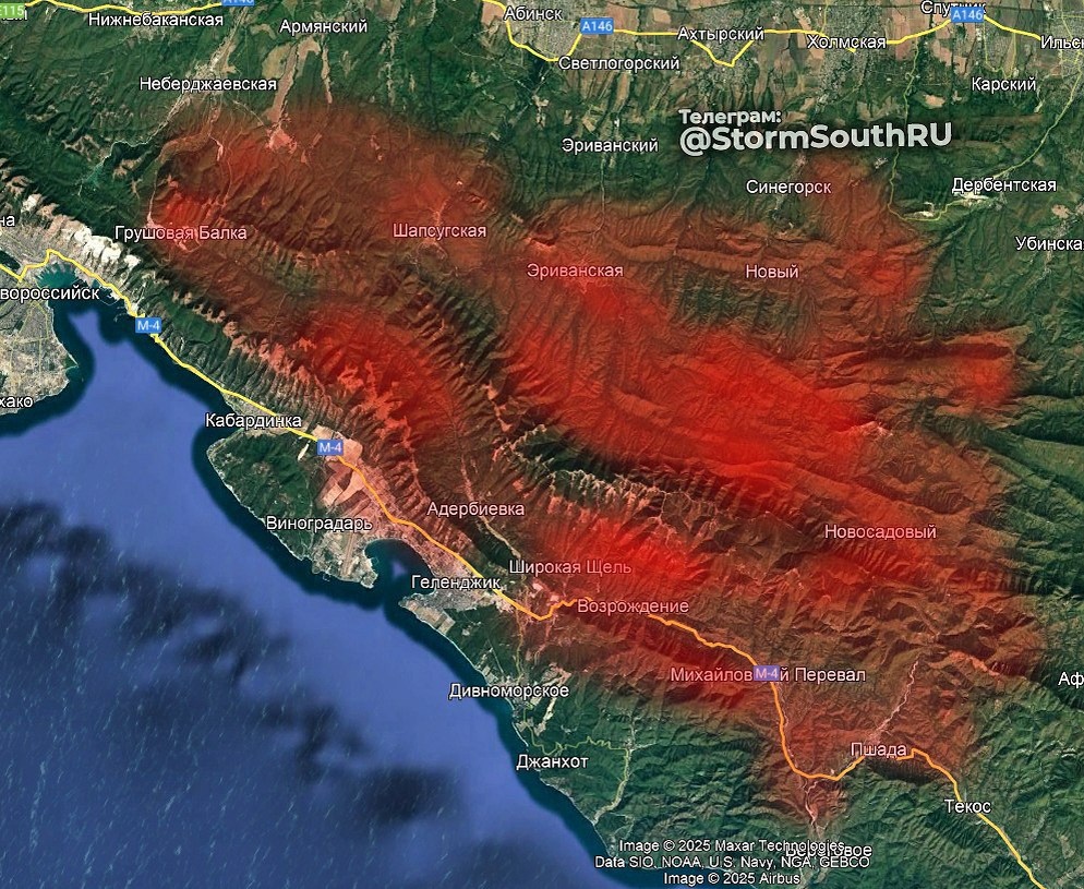 В этом районе берут начало реки которые текут как в сторону побережья (Дивноморское, Архипо-Осиповка), так и в сторону Абинска, станицы Северской и других населенных пунктов между Крымском и Краснодаром. Непосредственно в эпицентре сильных дождей находятся станицы Шапсугкская и Эриванская. Также в зоне риска полностью весь городской округ Геленджика, особенно участок побережья от Дивноморского до Архипо-Осиповки. Вероятные участки с наибольшим накоплением осадков подсвечены красным цветом Сильные дожди начнутся в ночь с 3 на 4 января и могут продолжаться в течение всего дня 4 января. Снижение интенсивности дождей ожидается только после 18:00 4 января. За это время может выпасть более 100 мм осадков, что приведет к стремительному росту уровня воды в реках. Источник: https://vk.ru/wall-225935636_17078 💬 Наш чат для общения 🚀 Подписаться на Архипка Live 📥 Прислать фото, видео, новость 📲 Архипка Live в MAX