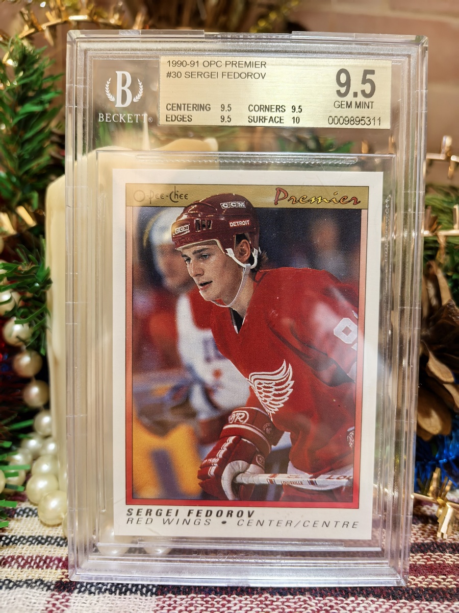 Есть карты, которые стоят на видном месте в onetouch холдере. А есть карты, с которых что-то начинается. Для меня карточка Сергея Фёдорова была самой первой в моей жизни. Это произошло примерно 30 лет назад. С неё началась любовь не только к карточкам, но и к Детройту🔴 и к хоккею в целом. А казалось бы просто карта... И вот с Фёдорова вновь что-то начинается, новая веха - хоккейные Graded Cards (карта с грейдом / карта с оценкой) в моей коллекции. Описать эмоции, которые она мне подарила невозможно. Но именно карточкой Фёдорова в цветах Детройта датированной 1991 годом я закрыл свой личный 2025 год. И открываю наш с вами Rocksta Sport Cards 2026 год! ☃️ Именно 🔤 1990/91 O-Pee-Chee Premier – #30 Sergei Fedorov BGS 9,5 стала самой дорогой сердцу в прошлом году. Самой ценной, самой эпохально важной! Хочу начать новый год в канале именно с неё. Спокойно. По-домашнему. С теплом. С благодарностью вам — за комментарии, диалоги, поддержку, живые эмоции. Этот канал давно уже не только «п