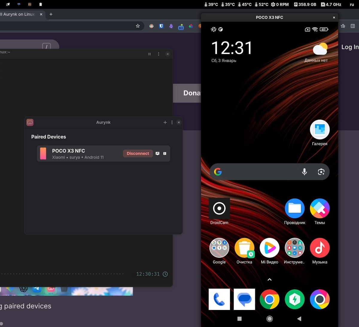 ... Многие замечали и ни раз что я для веб-камеры использую свой старый Poco X3 Pro через утилиту DroidCam и даже для OBS есть плагин DroidCam OBS ... всё прекрасно работает. Сегодня наткнулся на пост про то что можно отзеркалить смартфон себе на Линукс. Написал @toxblh и он мне рассказал что уже давно есть такой инструмент как scrcpy... Ну что поделать, отстал я от жизни компьютерной, дабы преуспеть в реальной... надо исправлять) Задача у меня была простая: Так как у Poco проблемы с экраном и он висит на штативе, чтобы каждый раз его не дёргать физически, хотелось чтобы можно было дотянутся до него удалённо. Собственно связкой с adb и scrcpy это всё и реализуется. Самый простой и быстрый способ делать это через терминал, но я пошёл дальше и наткнулся на клиент для scrcpy который делает это всё через GUI и элегантно посредством QR. Сегодня к вечеру накатаю в ALT Zero пошаговый гайд, вещь удобная ... не только же на макбуках айфоны ваши миррорить))) На Альте тоже можно (ладно на