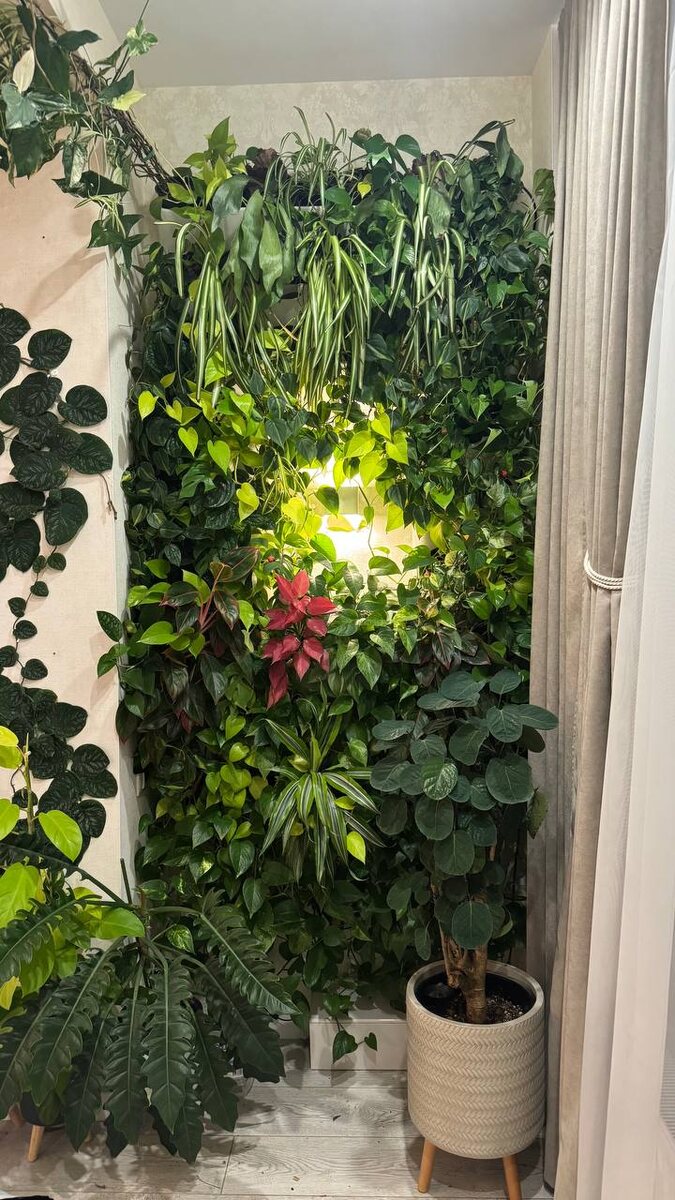 🌿 ✅ закрыла «лысину» слева наверху эпипремнумом неон. Он пока не слишком пушистый, но это вопрос времени. А фитостена теперь полностью завершена ✅дубиа продолжает активно расти, ее направила по верху, закрепила (сама параллельно полу пока не держится ✅империал вайт прижился и выдает крупные и яркие листья, немного подвязала его Из оставшихся дел-всех полить и проверить фитостену на наличие в глубине подсохших листьев (а они там есть всегда😅) Yu_jungle 🌱