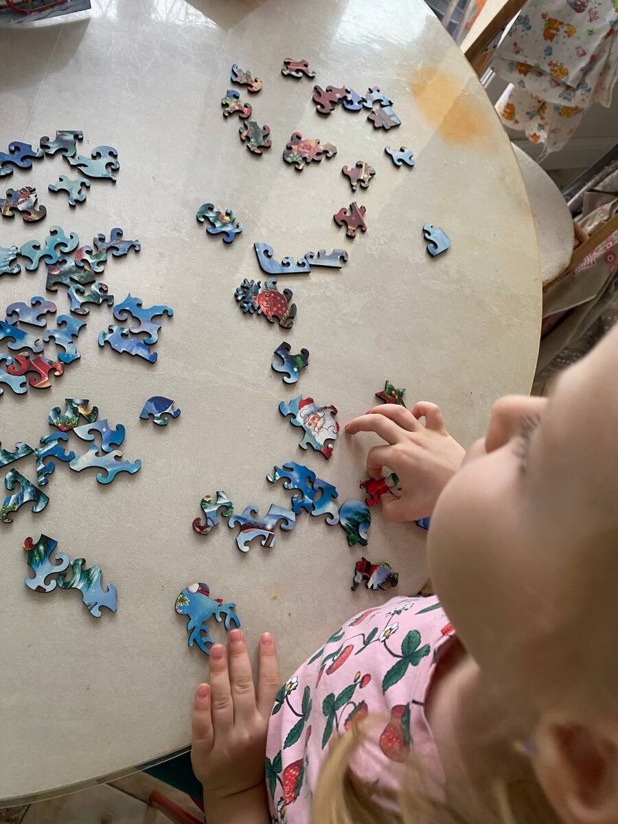 Когда на улице метель, а Лиза наслаждается частью подарков - деревянными пазлами и игрой для всей семьи «Медовод» 🐝