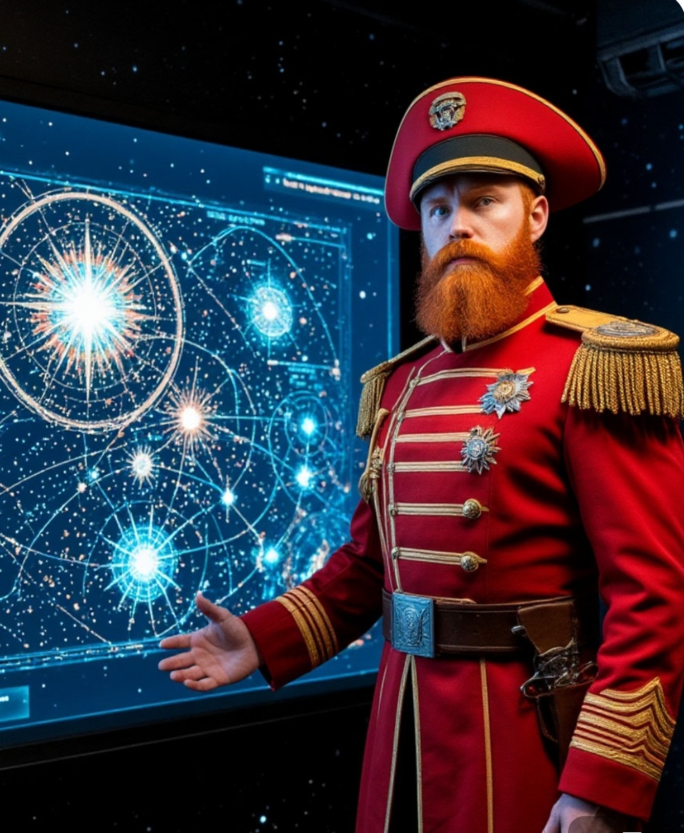 Дмитрий Ко-Синий Кот, играя с навигационным модулем, мурлыкал: «Мрр, курс корректирую с учётом искажений, словно читаю невидимые потоки. Каждый манёвр — как танец на лезвии бритвы.»