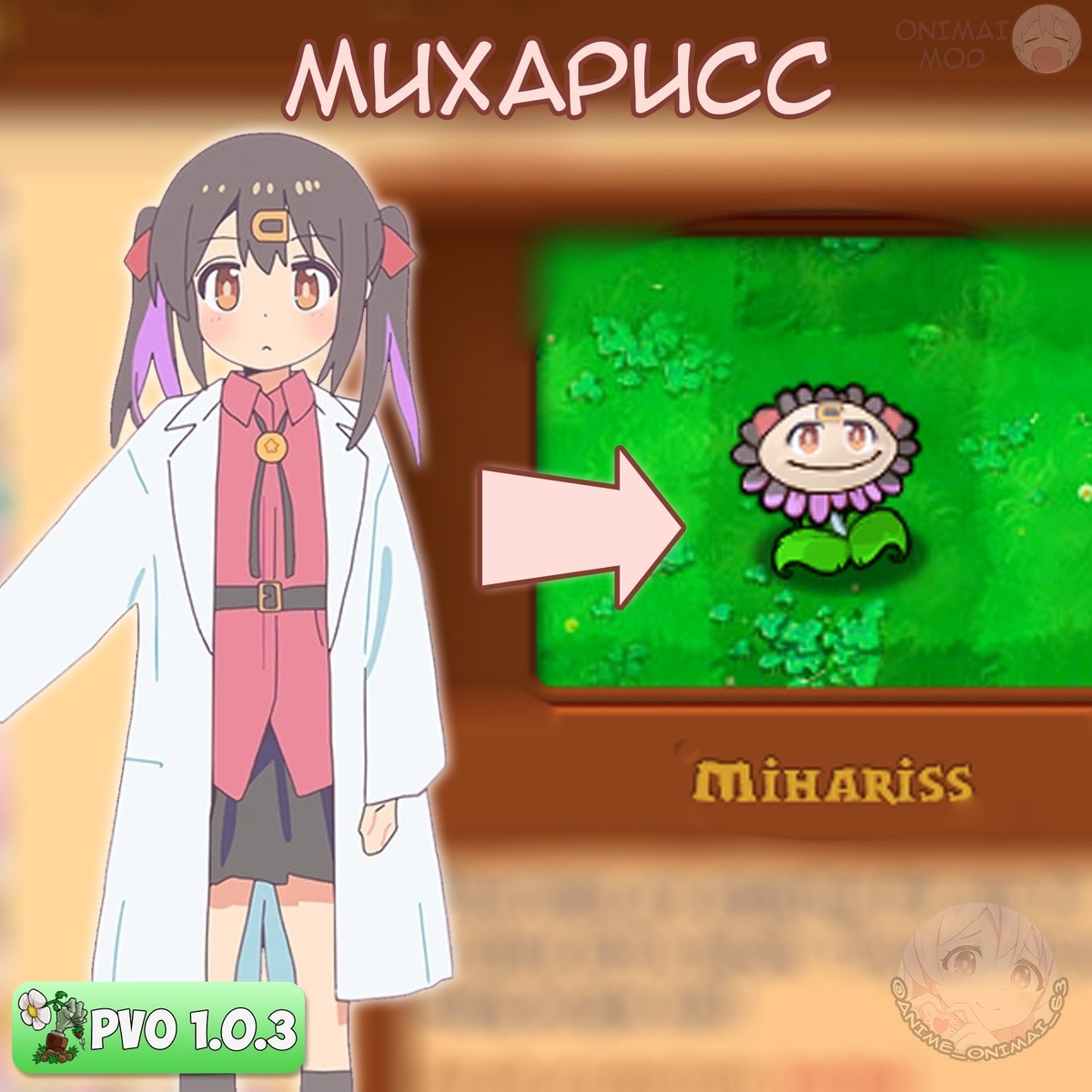 Plants vs. Zombies (далее называемый как Plants vs. Onimais) Представляем «Михарисс» - лабораторный цветок, выведенный Михари по образу и подобию создателя, способный выделять нектар и эфиры по составу схожие с составом препарата (но это не точно).