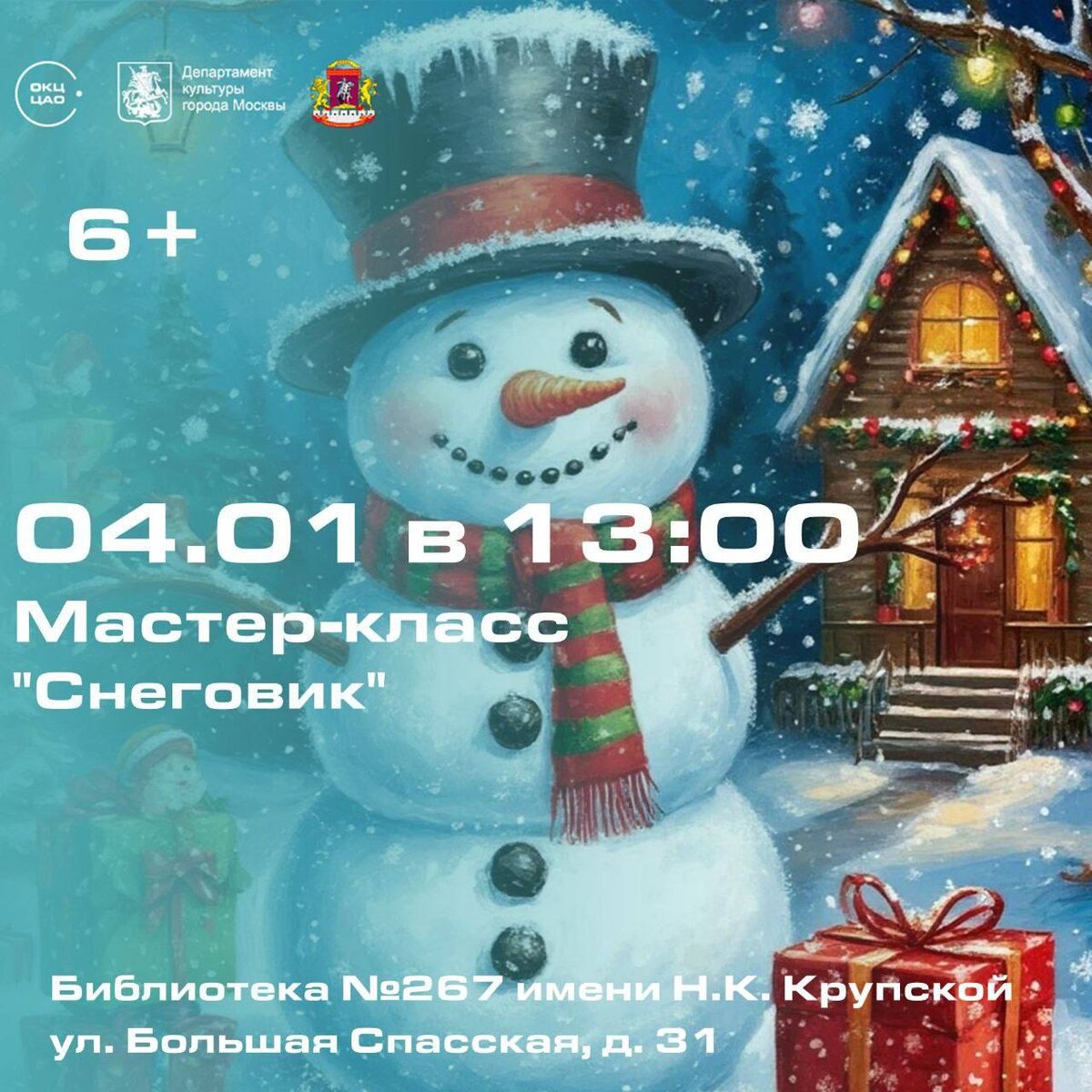Крупской + бесплатный детский обед в Гамбринусе 📆 4 января в 13:00 📍 Библиотека им. Крупской, ул. Большая Спасская 31 МК по лепке снеговика из воздушного пластилина. Регистрация не нужна, вход свободный. Под спокойную музыку вы: освоите основы лепки из воздушного пластилина, сделаете трехслойного снеговика с характерным носом-морковкой, глазками из бусин, ведром на голове и шарфиком из цветной глины, украсите поделку блестками, снежинками или миниатюрными пуговицами, получите готовую фигурку, которую можно использовать как елочное украшение, подарок или интерьерный акцент. А после МК можно будет подкрепиться в Гамбринусе с бесплатным детским обедом, ведь он в соседнем доме😉 Рекомендую заранее бронировать столик☝️ Кто пойдет с нами? 🤗