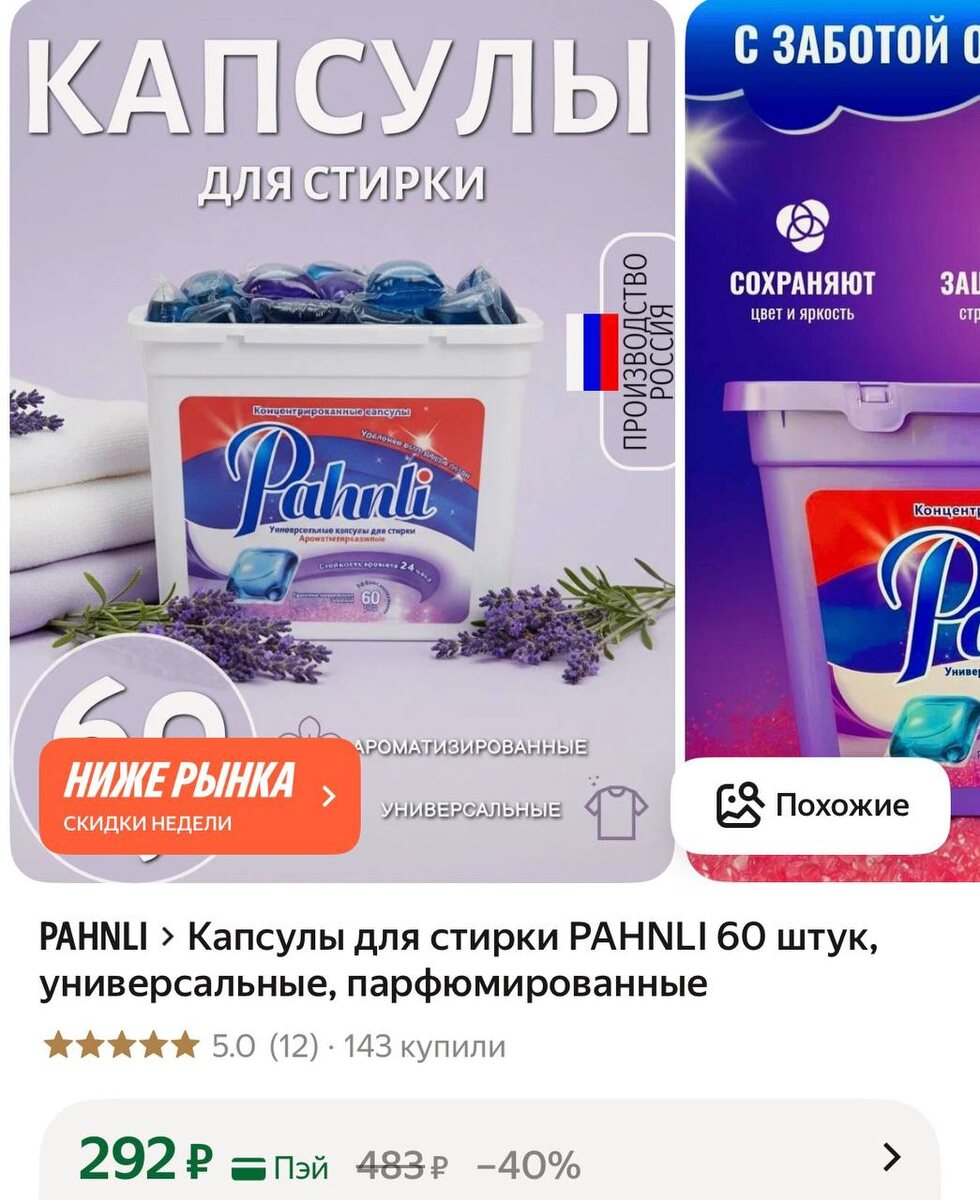 Капсулы для стирки PAHNLI 60 штук, универсальные, парфюмированные