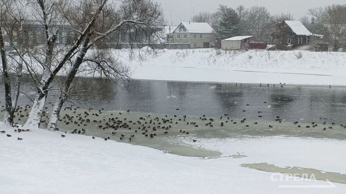 ». 🔸Здесь же обосновалась большая стая уток. Птицы разместились на ступеньках к причалу и на самом причале. 🔸Напомним, что орнитологи и экологи рекомендуют использовать продукты, близкие к естественному рациону уток: злаки, зелень и овощи. Кормить уток хлебом и мучными изделиями запрещено. Фото: РИА «Стрела»