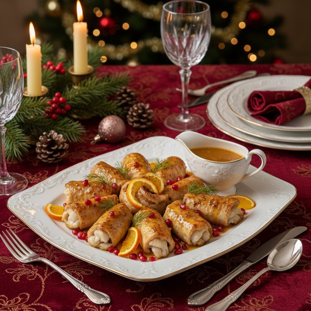 Ингредиенты ⤵️ 🔸Филе белой рыбы — 600 г 🔸Шпинат — 150 г 🔸Сыр фета — 100 г 🔸Апельсин — 1 шт. 🔸Горчица дижонская — 2 ст.л. 🔸Мёд — 1 ст.л. 🔸Сливки 20% — 100 мл 🔸Чеснок — 1 зубчик 🔸Оливковое масло — 2 ст.л. 🔸Соль, перец — 1 щепотка Приготовление🐟 1. Духовку разогреть до 190°C. 2. Филе рыбы разрезать на широкие тонкие пластины, слегка отбить, посолить и поперчить. 3. Шпинат обжарить на оливковом масле с чесноком до увядания. Смешать с раскрошенным сыром. 4. На каждую пластину рыбы выложить начинку, свернуть рулетиком, закрепить зубочисткой. 5. Рулетики выложить в форму для запекания. 6. Для соуса: из апельсина выжать сок, смешать с горчицей, мёдом и сливками. Посолить по вкусу. 7. Залить рулетики соусом, запекать 20-25 минут до готовности рыбы. 8. Подавать горячими, полив соусом из формы. Рецепт дня #рыбные_рулетики #рыба #филе #белая_рыба #соус #праздничный_стол