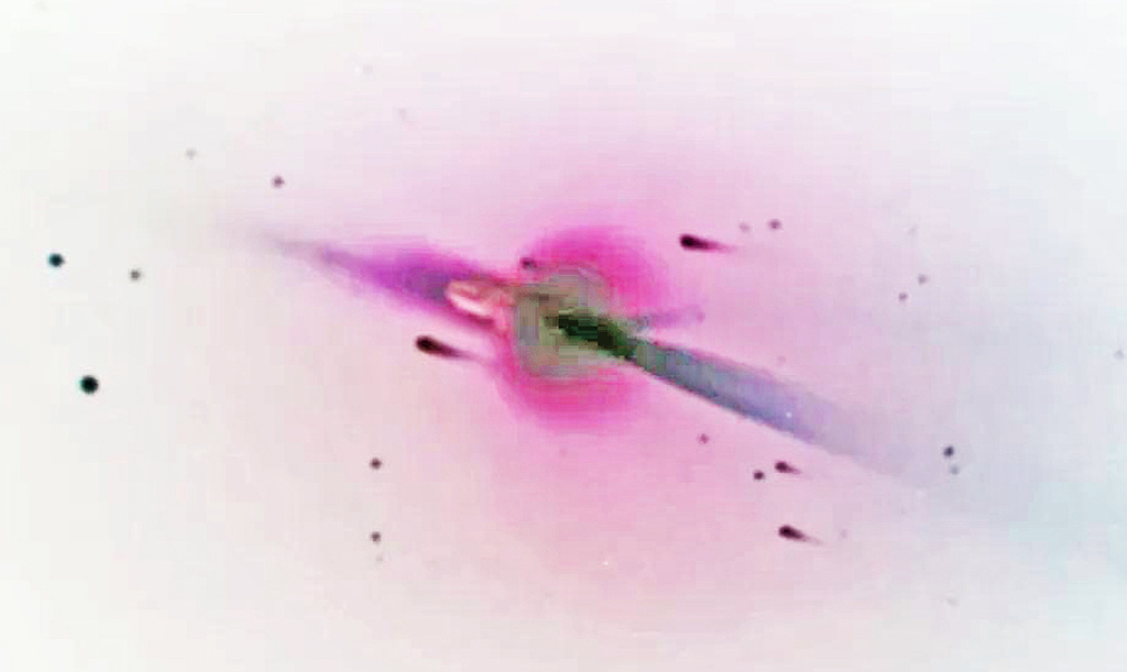 фотографии 3I/ATLAS были подлинными, судя по их близкому сходству (одна из них показана ниже) с более поздними фотографиями 3I/ATLAS, сделанными вблизи Земли. Тот, кто "слил" эти ранние фотографии (например, сделанные в январе 2025 года), возможно, также передал их другим устно. Это объясняет, почему Джереми Корбелл услышал разговоры о «инопланетном космическом корабле, медленно приближающемся к Земле». Тогда именно ОН принял решение, не основанное на каких-либо известных фактах, прийти в студию и сказать всем, что это будет всего лишь "психологическая операция" (по какой причине, остается неясным). Для этого у США должны были бы быть очень мощные, но засекреченные космические телескопы, которые смогли бы получить подробные изображения 3I/ATLAS за шесть месяцев до того, как эта новость стала достоянием общественности. Если вы почитаете одну из работ Ави Лоэба , то сможете совершенно ясно увидеть, что 3I/ATLAS испускает три струи, разделенные углом в 120 градусов, интенсивность котор