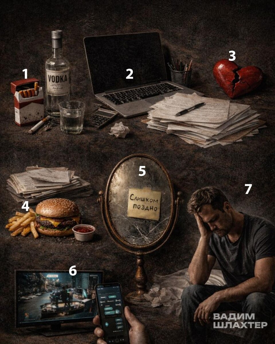 ? 🎅 Посмотри на картинку. Выбирай то, что действительно нельзя тащить в 2026 год. 1. Вредные привычки (алкоголь, сигареты) 2. Старая работа (не ценят, нет карьеры) 3. Прошлые отношения (токсичные и абьюзивные) 4. Неправильное питание (отказ от фастфуда) 5. Негативные мысли (страх что слишком поздно) 6. Прошлый режим жизни (нет спорта, залипание в гаджетах, ТВ) 7. Пустые обиды - отказ себе в удовольствии, пустая трата времени. Пиши в комментариях, что выбрал.