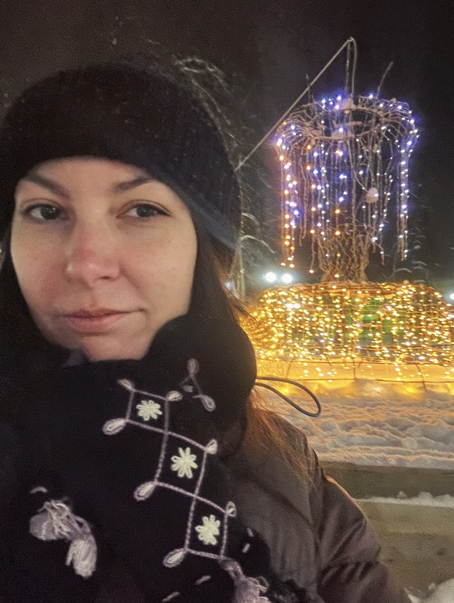 А на улице у нас — настоящая русская зима, та самая, из сказки. Вчера было -16, и мы с мужем, как два отважных полярника, совершили вылазку из берлоги. Цель — посмотреть на новое украшение нашего Волочка, «Домик Петра».